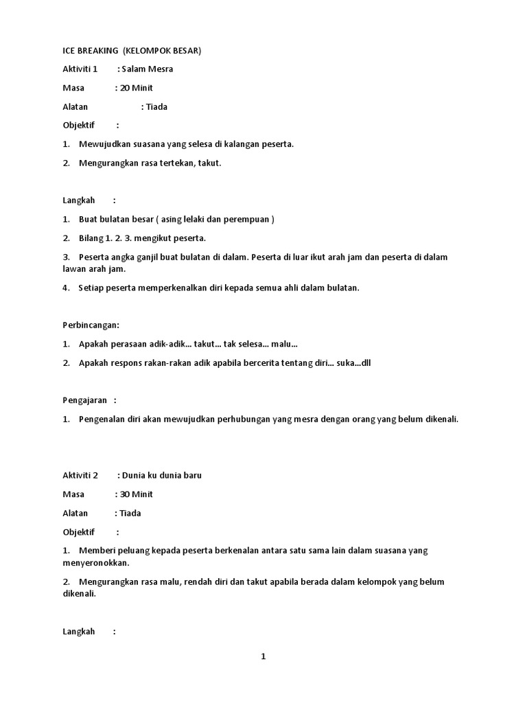 Contoh Modul Aktiviti Team Building - Modul Team Building Docx Modul Team Building Aktiviti 1 Nama Aktiviti Dimana Aku Sekarang Tempoh Masa 2 Jam Peralatan Kain Hitam Meja Dan Kerusi Tali Course Hero - Examples of activity types include icebreaker questions, virtual campfires, and group fitness classes.